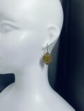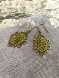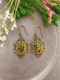 グリーンとイエローが耳元に華やかさをプラスするピアスです。