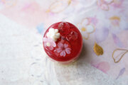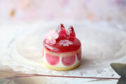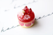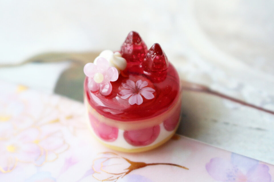 バーナーワークの技法で制作した、とっても小さな桜と苺のケーキです。