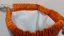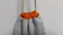 無地のオックス生地を使い、シンプルに、口布だけ明るい色(コットン生地)で作りました。