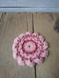 ピンクカラーのニットのフラワーコースターです。