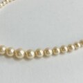 こちらはガラス素材の原玉に、オリジナルパール塗料にて何層にも渡り重ね塗りを施した日本製ガラスパールのグラデーションネックレスになります。パールカラーはきめ細かい質感とほど良い艶感が特徴のアプリコットクリーム色。濃厚でやや赤味のある濃いクリーム色となっております。パールサイズは直径約4mm~8mm玉を使ったグラデーション仕様で、長さは標準的なプリンセスサイズの全長約42cmで仕上げました。テールエンドにアジャスター/約5cmを付けていますので、約5cm程の延長が可能です。サイズ・カラー共にお使いいただきやすいデザインのネックレスです。