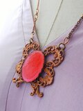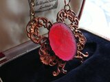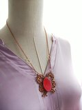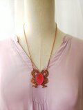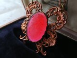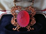 ヴィンテージ Red-frostカメオ(30×22㎜)フランス蝶フィリグリーネックレス