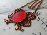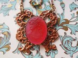 1950年代頃Germanヴィンテージ、約30×22㎜ほどの赤色のフロストGlassカメオでお作りしましたネックレスです。