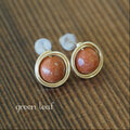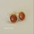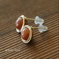 14kgf*ラウンドカット*ゴールドサンドストーンの大きな一粒ピアス