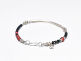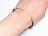 湾曲カレンシルバーと漆黒ビーズ、金赤ホワイトハーツの華奢なブレス