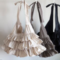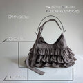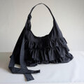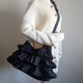 上品な光沢としっとりとした手触りの撥水加工ポリエステルツイルで作った大人のフリルショルダーバッグです。