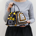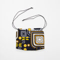 コンパクトで華やか、アフリカンプリントの巾着ショルダーバッグです。