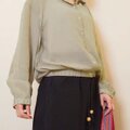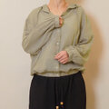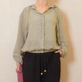 新作❤︎春限定2025ほどよいシアー感綿麻フーディージャケットブラウス(グリーンベージュ)25010GBF