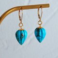 大粒ターコイズ ドロップカービングピアス 14kgf