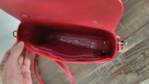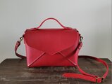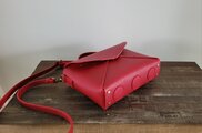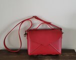 一枚の革を箱を組み立てるように折り曲げて作った、ショルダーバッグ。