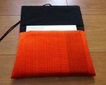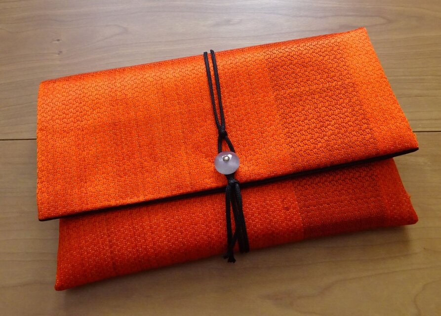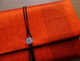 画像ではの赤の帯から仕立てた御朱印帖入れです。