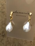 * お洒落 * バロックパール ゴールド 一粒 パール 上品 お出かけ 真珠 式 フォーマル イヤリング / ピアス