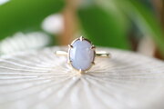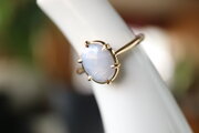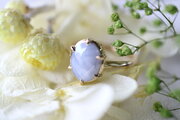 淡いブルー色が美しくスター効果も十分に見える大粒のルースを使用