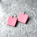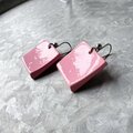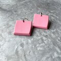 ピンクのエナメルペイントされたスクエアプレートダングリングピアス。