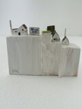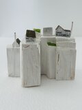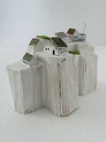 白い崖の上にひっそりと佇んでいる、煙突のある小さな家々のオブジェ作品です。