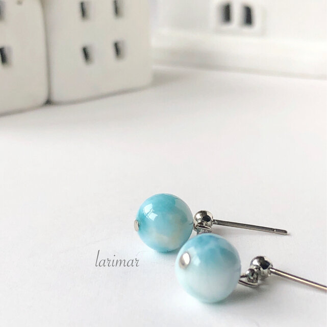 ラリマー8㎜玉ピアス