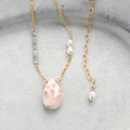 やさしいピンクがあたたかな気持ちにさせてくれるネックレスです。春の日のおでかけのお供にぜひどうぞ。