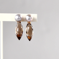 美しい照りと艶を持つ高品質の淡水パール(シルバーラウンド)のポストピアスに、透明感あふれるスモーキークォーツのデュードロップチャームを添えた、エレガントな2WAYデザインのピアスです。