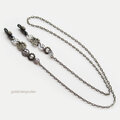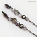 シルバーと真鍮古美の色形の違う歯車がアクセントになったメガネチェーン(グラスコード)です。
