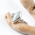 糸魚川産の翡翠原石を磨き、繊細な薔薇のモチーフを添えて可憐なリングに仕立てました。