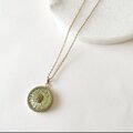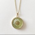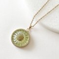 淡いイエローのフラワーモチーフが美しい、チェコガラスボタンを使用したネックレス。