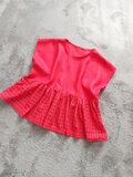オレンジレッドリネン&チェックレースのギャザーフリルブラウス