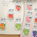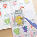 ガラス瓶に詰められた9種類のフルーツのステッカーです。