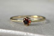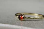 古代ヨーロッパなどでは赤い石(そのほかの色も存在します)であるガーネットは血の象徴とされ、戦場に赴く戦士たちはケガから身を護り生きて帰るためにお守りとして持っていくことがあったそうです。そのような故事があるように、この石は血や生命力と深く関わる、生を象徴する石で生きることに関する前向きな気持ちを持たせる石として昔から人の文化や歴史と関わっていた石とされております。1月の誕生石とも言われております。