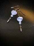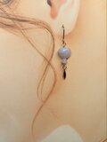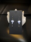 天然石ピアス パワーストーン ブルーレースアゲート ハート型 約10㎜ ラウンド 約4㎜ ブラジル産 メタルパーツ ツララ 8×2㎜ ハンドメイド シルバーカラー チェーン式 セミロング ステンレス フックピアス