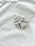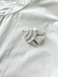 サイトの写真よりなお美しいブローチが届きました!白なのに光でさまざまな色が差し、季節を問わずどんな服にも映えそうです。 包装もとても丁寧で、作品への愛と購入者への心遣いが溢れており、とても幸せな気持ちになりました。 素敵な作品をありがとうございました!きっとまたご縁がつながる気がします。
