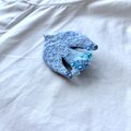 尻尾には、花のスパンコール、中央には透明感と輝きのある明るさのある水色のお花をビーズで刺繍面から浮かした形で咲かせてみました。
