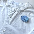 sora blue お空の色を纏うしっぽがお花の鳥モチーフ(おめめなし) 刺繍ブローチ