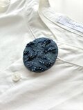 とてもとても素敵なブローチです。青、紺色系の服につけようと購入しましたが、ブローチに使われている数種類の青が美しく馴染みます。そして少し神秘的。 物語のようなブローチの名前にも引き込まれました。 素敵なブローチをありがとうございました。