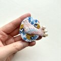 haru no kuchibue 春の口笛 春のやわらかなピンク色とふっくら鳥さんの刺繍ブローチ