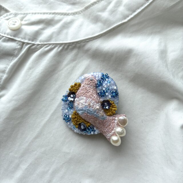 とてもとても素敵なブローチです。青、紺色系の服につけようと購入しましたが、ブローチに使われている数種類の青が美しく馴染みます。そして少し神秘的。 物語のようなブローチの名前にも引き込まれました。 素敵なブローチをありがとうございました。