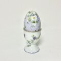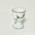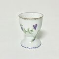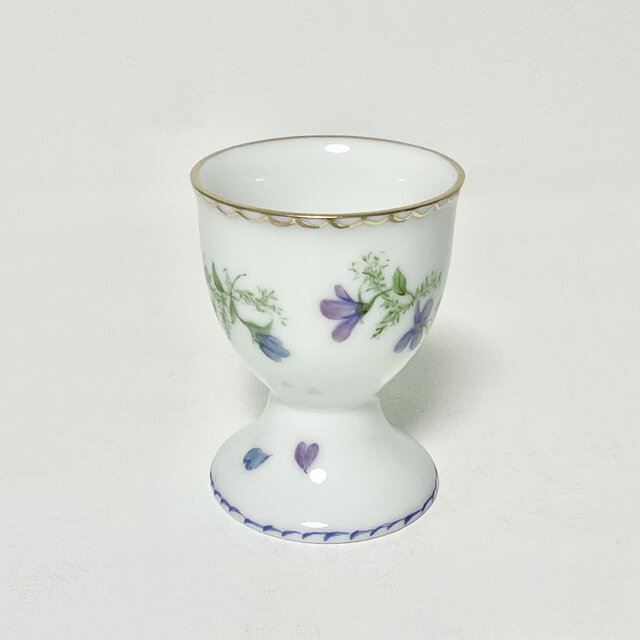 白磁のエッグスタンドに、スミレの花を散らして描いて、金彩で装飾しました。