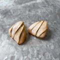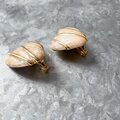 YM160-【 Monet 】モネ・ヴィンテージイヤリング Gold Tone Silky Beige Marble