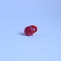 ガラスの色は真っ赤。小さなスズランが2輪彫刻されています。