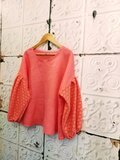 ピンクリネン&ニットレースのパフスリーブブラウス