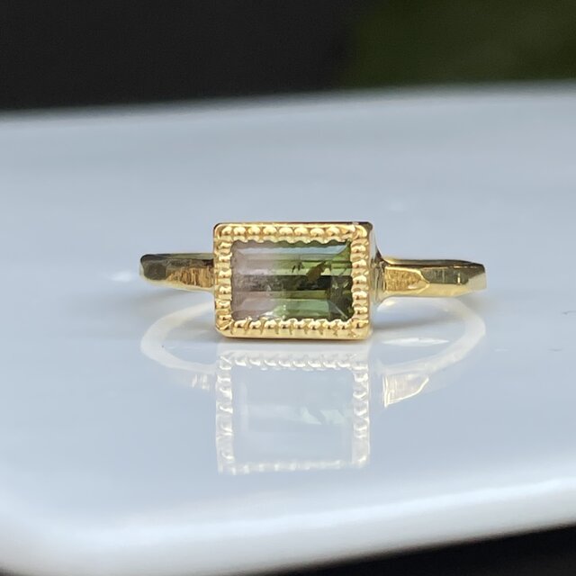 バイカラー トルマリン バゲットカット 1ct 桜餅配色 シルバーSV925リング