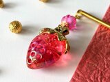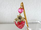 かんざし クリアカラーの苺チャーム ピンク 赤 レッド ゴールド 一本挿し 一本簪 春夏 いちご イチゴ 涼しげ