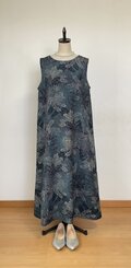 アンティーク着物、葉模様十日町紬のワンピースです。