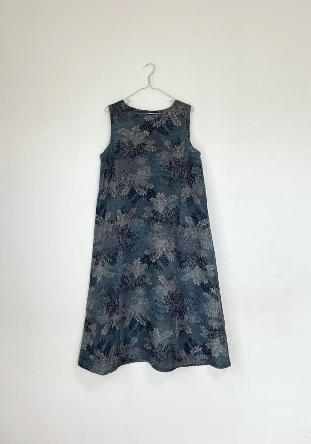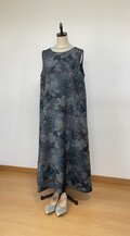Y様ご予約品*アンティーク着物*葉模様十日町紬のワンピース(Lサイズ)