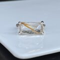 ルチルクォーツ 長方形 立体ラフカット 爪留め シルバーSV925リング