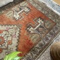 ヴィンテージラグは古い手織物のため使用感や糸のほつれ、補修修繕跡、ヨレやシミ、色むら、穴あき、毛羽立ちなども見られる場合がございます。ヴィンテージラグの魅力としてご理解いただき、良いと思える方にご購入いただけると幸いです。