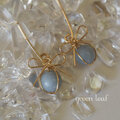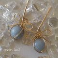 小粒のエンジェライトを使用しているので、さりげなく耳元を彩りながらも、可愛らしいリボンが目を引きます。