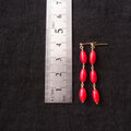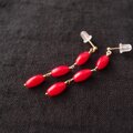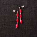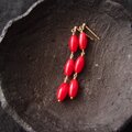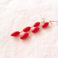 ナチュラルなレッドコーラルを使ったライスシェイプのロングピアス。