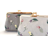 ・がま口ポーチ他、内布には表地の刺繍を際立たせる為に敢えて柄の無い布(主にリネン)を使用しています。