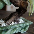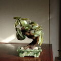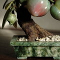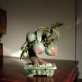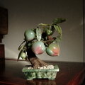 チャイナレトロな雰囲気◆中国産 翡翠 桃の盆栽 インテリアオブジェ ビンテージ 可愛い シノワズリ【欠け有り】