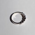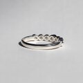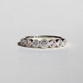 ミル留めされた7石のモアサナイトが並ぶクラシカルなデザインのリングです。